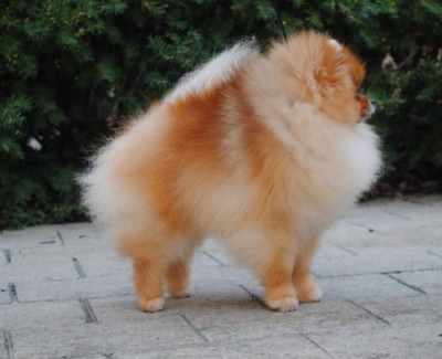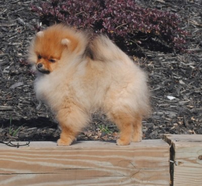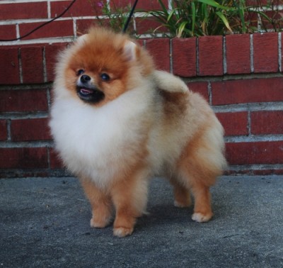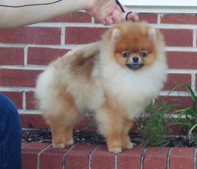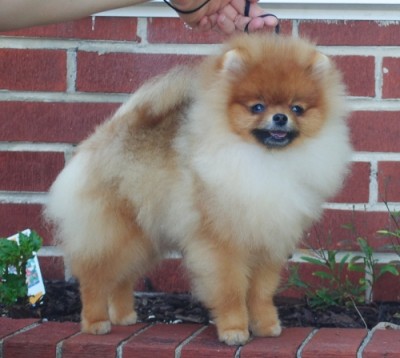 Tarly in the ring at the 2017 American Pomeranian Club National Specialty where he won 1st in American Bred & Best American Bred In Specialty.