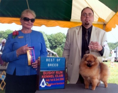 Roxie's sire "Parker" is the top winning and top producing Pomeranian of all time, and with her mother "Meg" he produced five puppies in two litters -- all of which finished!